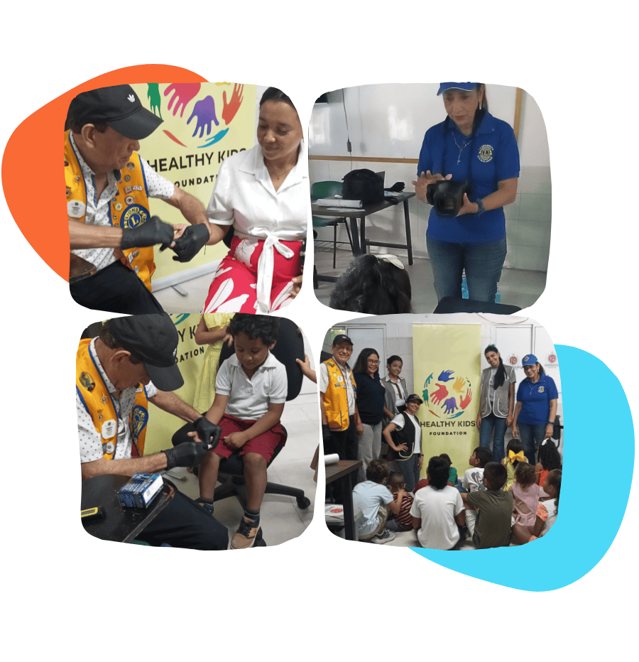 Durante la actividad se ofrecieron exámenes de glucosa orientados a la prevención de la diabetes, y exámenes visuales realizados con un dispositivo portátil de última tecnología, traído especialmente desde los Estados Unidos por el Club de Leones. Este equipo permite tomar una fotografía de los ojos de cada niño y obtener un diagnóstico inmediato de posibles afecciones visuales.